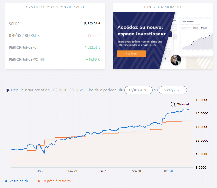 - Actions : 15,7 %, référence Yomoni profil dynamique 8